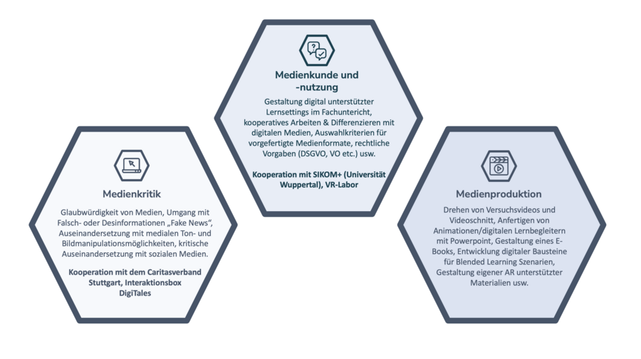 Mit dem Ziel der Förderung digitalisierungsbezogener Kompetenzen für Lehramtsstudierende der Fächer Chemie und Sachunterricht im Rahmen der ersten Phase der Lehrkräftebildung wurde ein didaktisches Konzeptfür ein dreistufiges Modul "Medialab" entwickelt, das seit WiSe 20/21 in das Modulhandbuch des Lehramtsstudiengangs Kombi B.A. integriert wurde.
