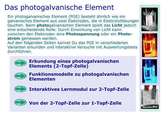 Übersicht und Funktionsweise des photogalvanischen Elements in Wort und Bild.