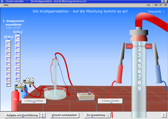 Virtuelles Experiment zur Knallgasreaktion und Auswertungsfragen, Gesetz von Avogadro.
