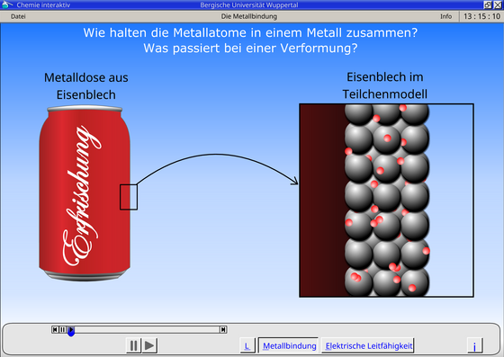 In virtuellen Experimenten und Animationen auf der Teilchenebene wird die Stromleitung in Metallen (Teil 1), Lösungen (Teil 2) und Halbleitern (Teil 3 - im Test) mit und ohne Zufuhr von Wärmeenergie untersucht.