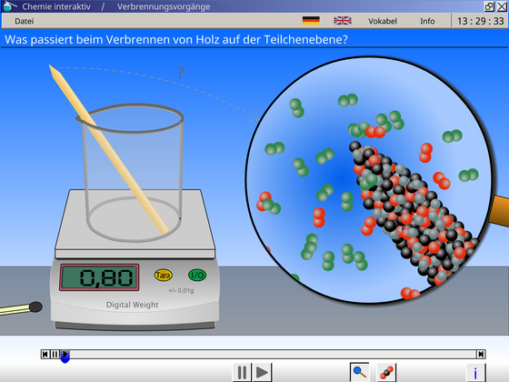 Teil 1: Trickfilm zum Lösungsvorgang auf der Teilchenebene mit automatischer Steuerung bzw. interaktiv durch Lehrer oder Schülerinnen und Schüler