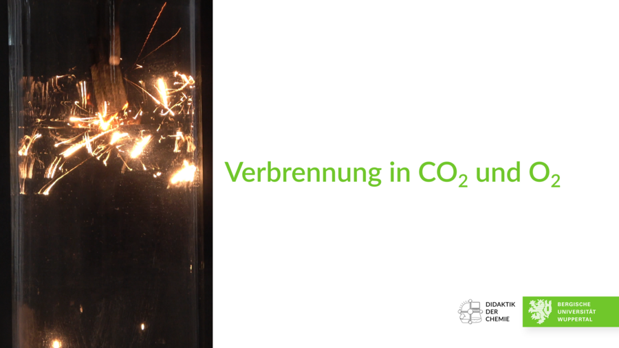 Im Video wird gezeigt, was geschieht, wenn brennende Eisenwolle, ein glühendes Stück Holzkohle und ein brennendes Magnesiumband in eine Atmosphäre aus Kohlenstoffdioxid gehalten werden, bzw. wenn sie in eine Atmosphäre aus reinem Sauerstoff gehalten werden.
