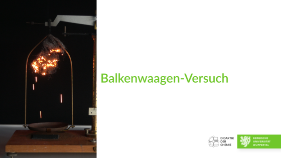 An einer Balkenwaage werden auf beiden Seiten gleiche Massen an Eisenwolle befestigt, so dass diese im Gleichgewicht ist. Die Eisenwolle auf einer Seite wird angezündet.