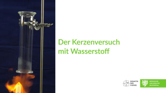 Ein Standzylinder wird mit Wasserstoff gefüllt. Anschließend wird von unten eine brennende Kerze mehrmals in diesen eingeführt.