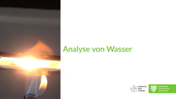 In einem Rundkolben wird Wasser zum Sieden erhitzt. Der Wasserdampf wird über Magnesiumbandstücke geleitet, die sich in einem Verbrennungsrohr befinden. An der anderen Seite des Verbrennungsrohrs ragt ein gebogenes Glasrohr in eine pneumatische Wanne. Das Magnesiumband wird mit einem Brenner so lange erhitzt, bis es zündet. Das entstehende Gas wird pneumatisch aufgefangen und es wird die Knallgasprobe durchgeführt.