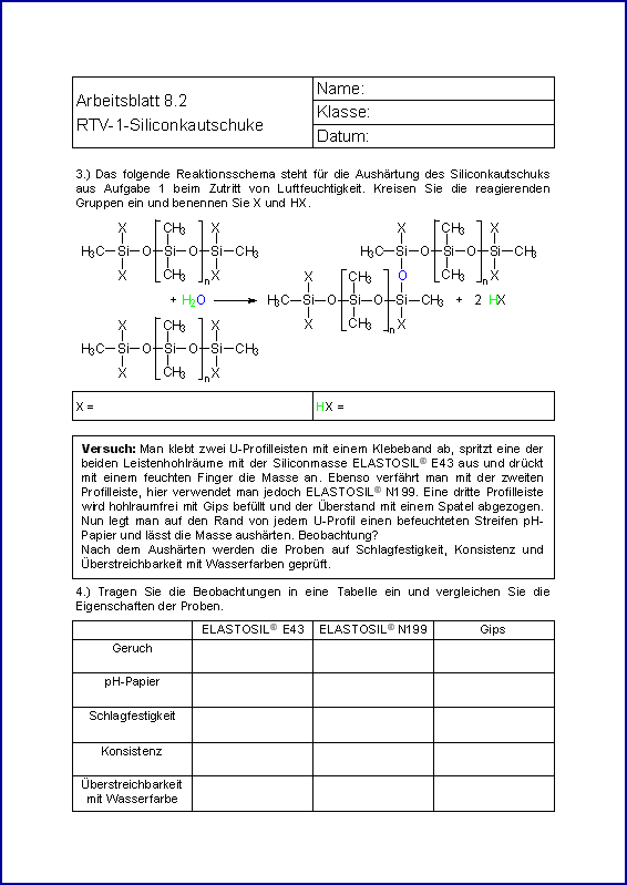 Arbeitsblätter: RTV-1-Siliconkautschuke (arbbl8) |