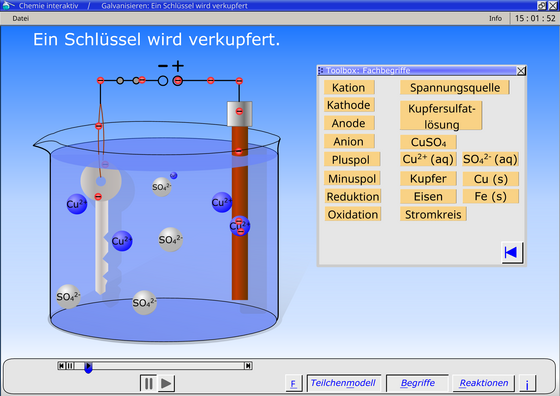 Ein Schlüssel wird verkupfert: virtueller Versuch und Teilchenanimation.