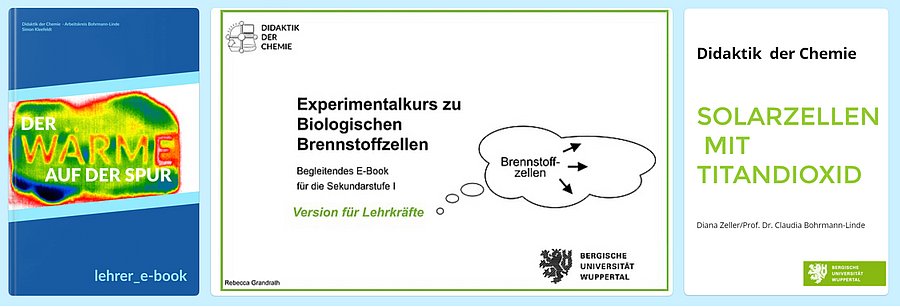 Im Rahmen von Abschlussarbeiten oder Dissertationsvorhaben wurden die entwickelten didaktischen Konzepte zu innovativen Themen auch in Form von E-Books als digitale Lernbegleiter zugänglich gemacht. Diese sind über den Server der Universitätsbibliothek der Bergischen Universtät Wuppertal verfügbar: Dort können sie heruntergeladen und unter Angabe der Zitation weiterverwendet werden.