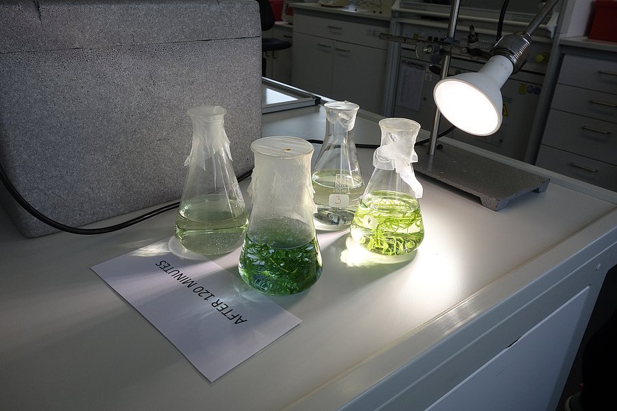 - Durchführung von Experimenten im Labor in Kleingruppen und Nutzung digitaler Lernbegleiter