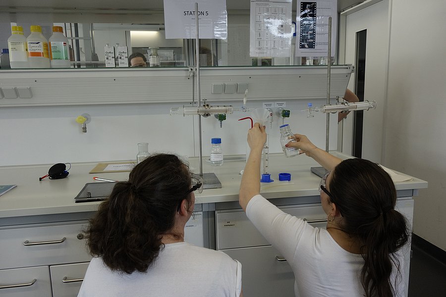 Fragestellungen und innovative Themen aus Forschung und Entwicklung und leisten einen Beitrag zur Förderung digitalisierungsbezogener Kompetenzen und Bildung für Nachhaltige Entwicklung (BNE). Betreut werden die Kurse durch Lehramtsstudierende des Fachs Chemie im Rahmen ihres Studiums.
